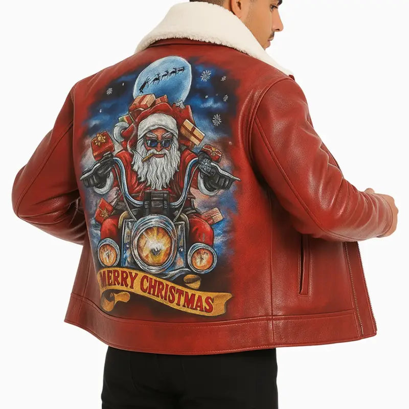 Santa is Coming Hand Painted Leather Jacket