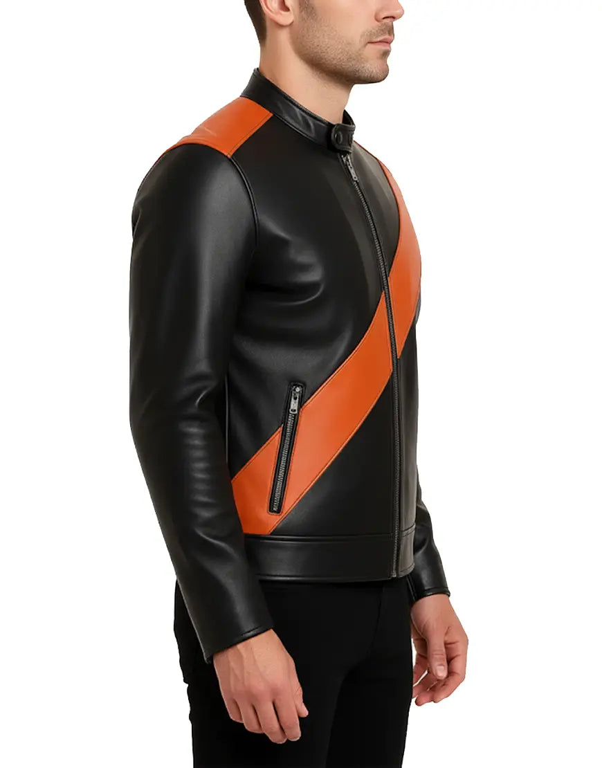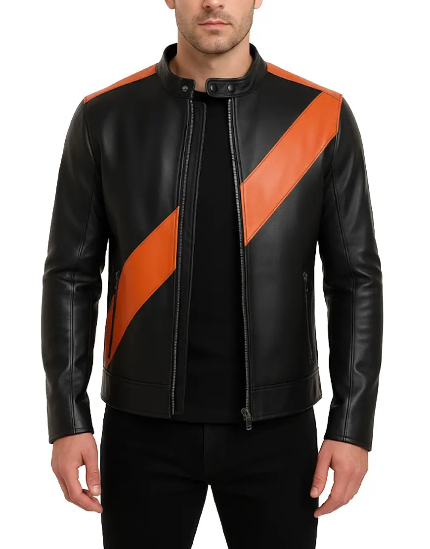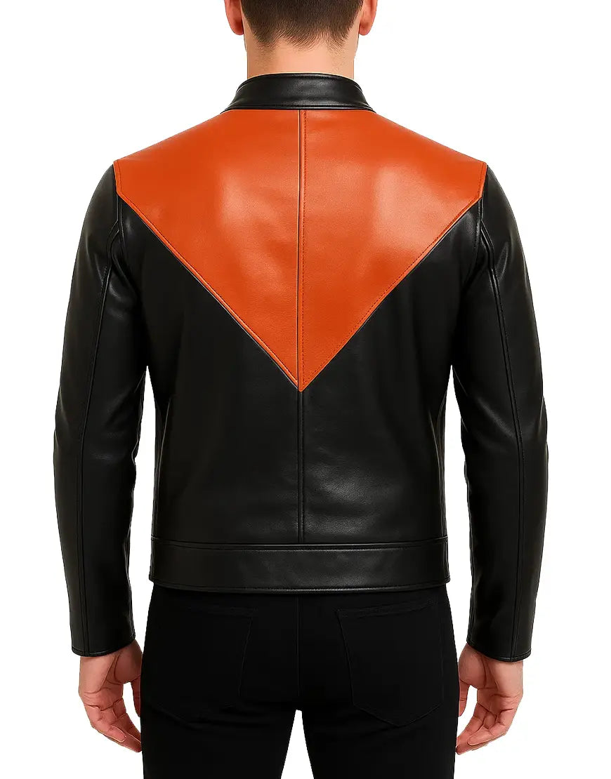 Classic Black And Orange Haloween Leather Jacket For Men