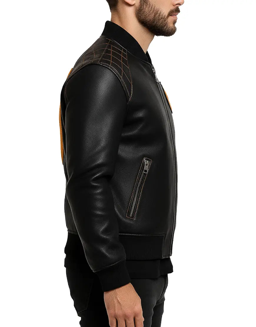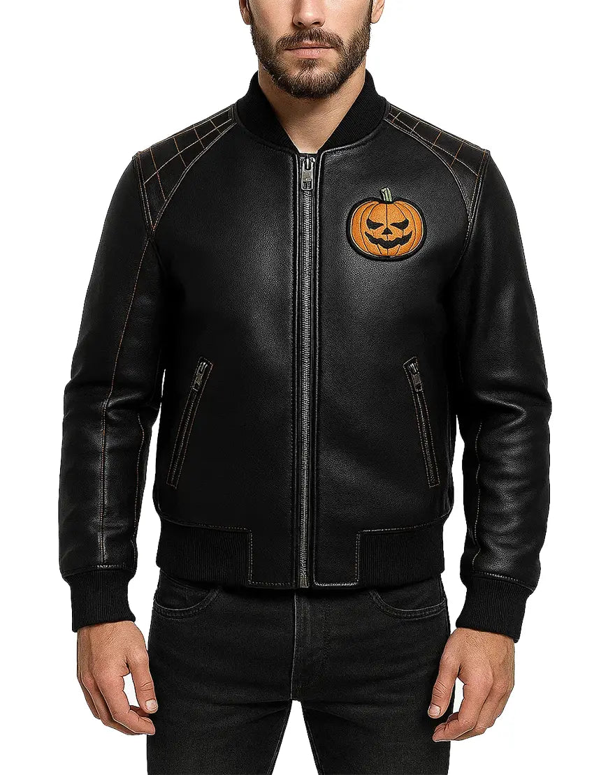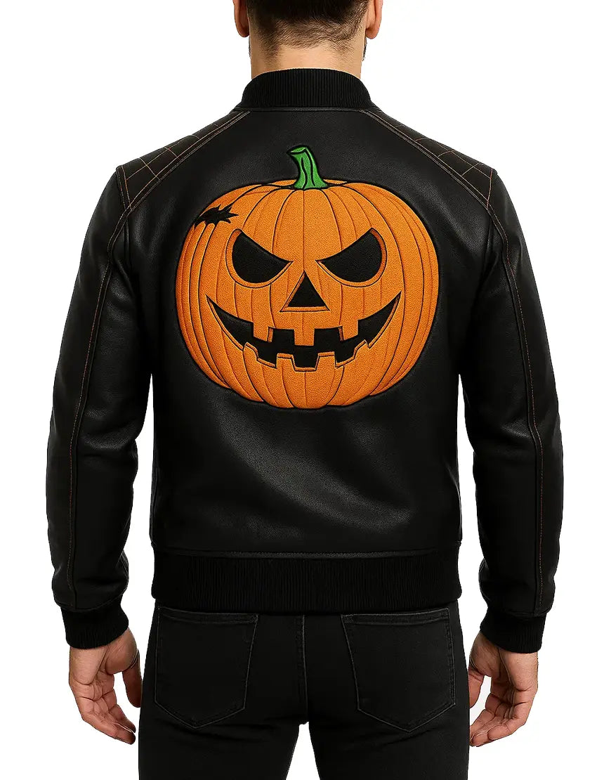 Halloween Inspired Black Embroidered Pumpkin Patch Jacket For Men