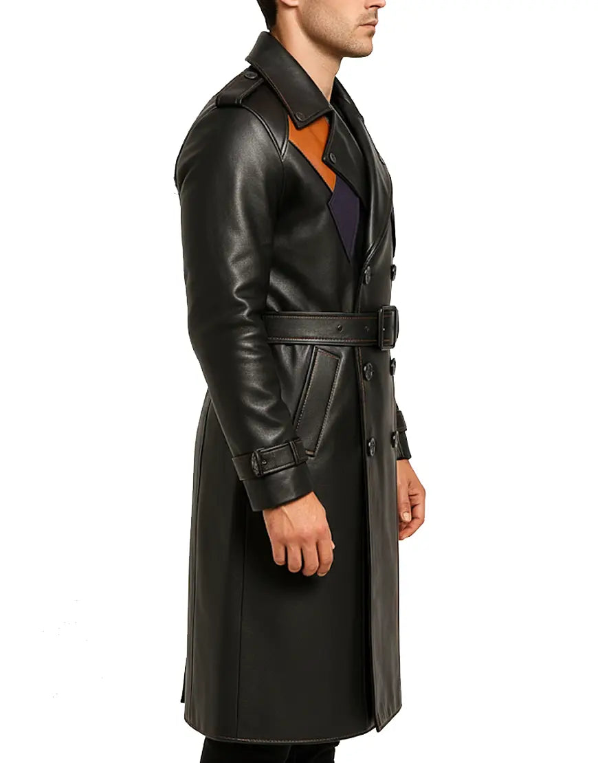 Men’s Black Leather Trench Coat For Halloween