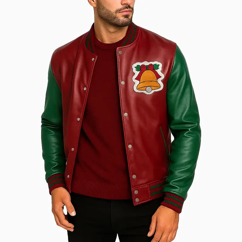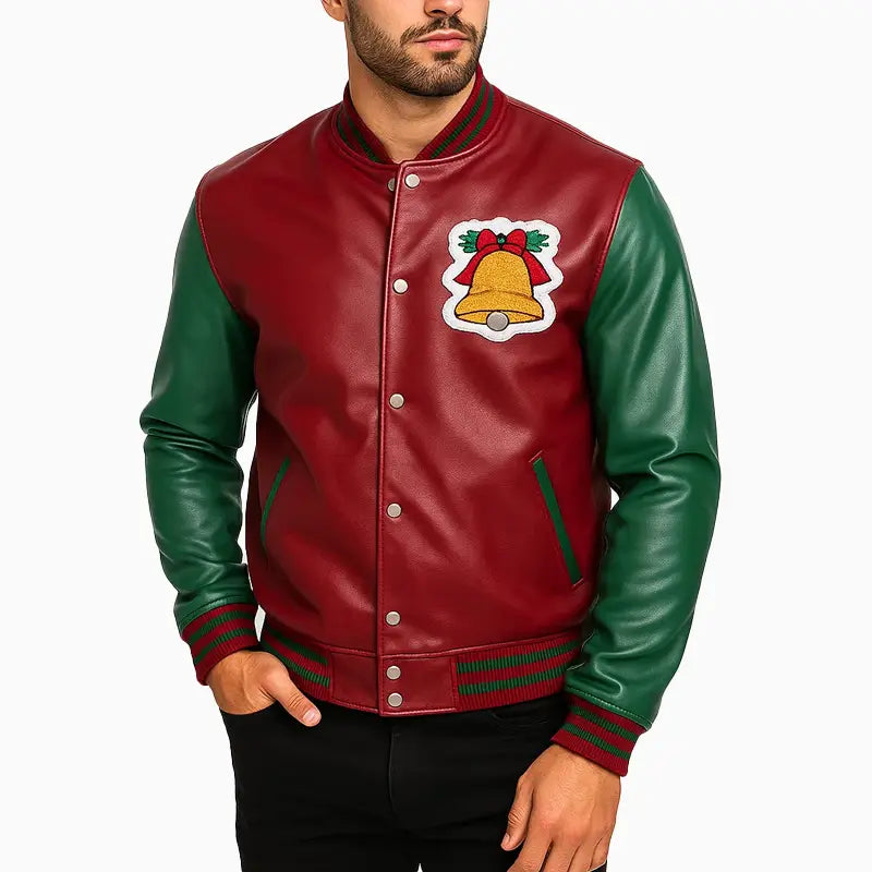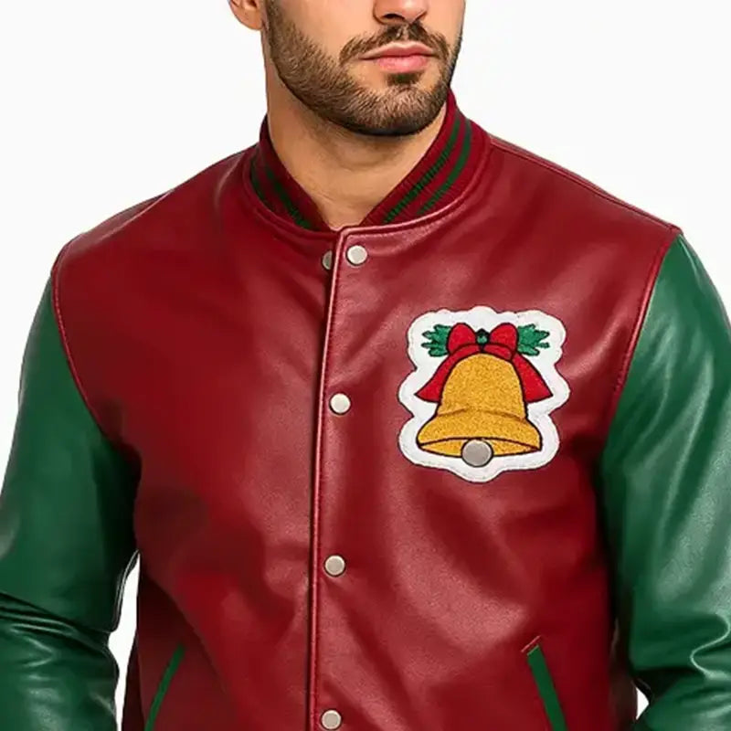 Men's Jingle Bells Embroidered Bomber Leather Jacket Patch
