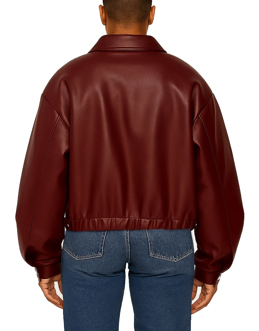 Bring effortless streetwear style into your wardrobe with this Oversized Burgundy Leather Jacket designed for men who love a bold, relaxed silhouette. Made from high-quality real leather, it features a smooth finish with a premium feel, giving you an elevated look that works for both casual and semi-formal outfits. The rich burgundy tone adds a standout character while still being versatile enough to pair with denim, chinos, or all-black fits. This bomber-inspired design includes a smooth front zipper closure, wide sleeves, and an elasticated hem for that signature oversized drape and comfort. The classic shirt-style collar adds a refined touch, while the clean minimal front keeps the look modern and fresh. Whether you're heading out for a casual day or styling for a streetwear shoot, this jacket ensures you stand out with confidence and style.