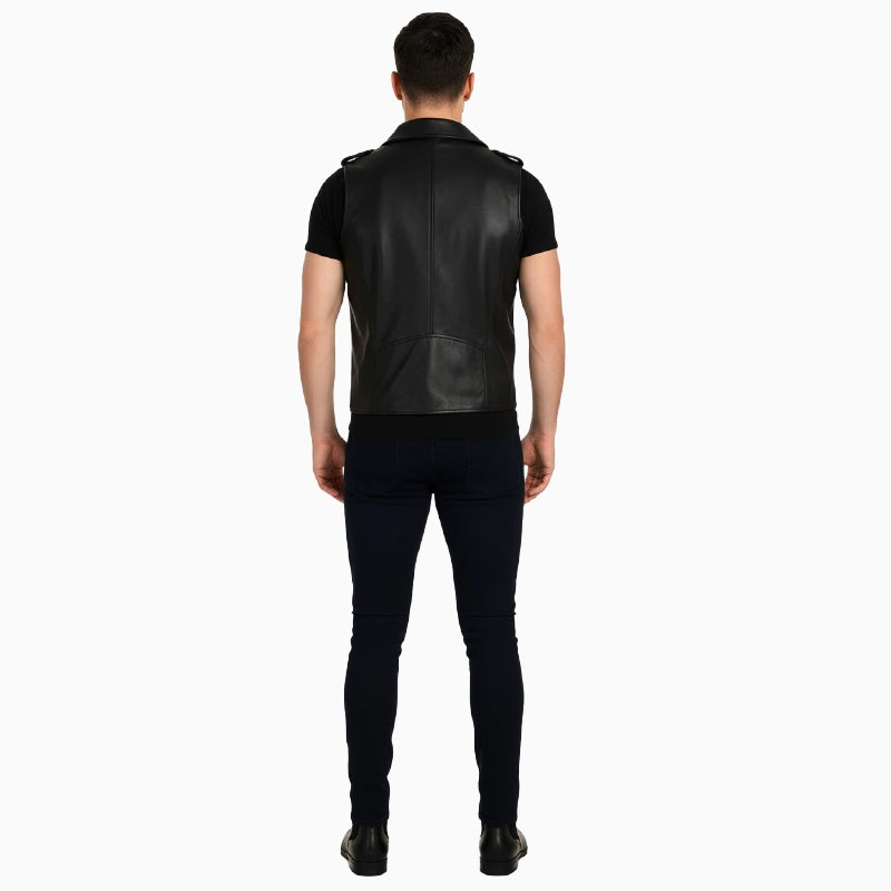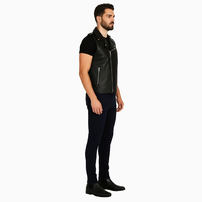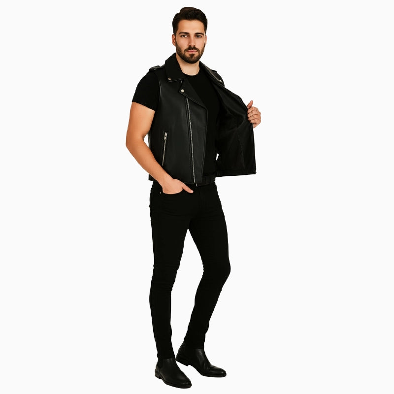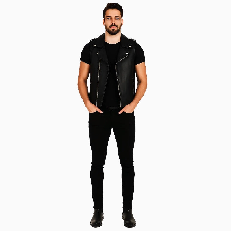 Black Biker Leather Vest For Men