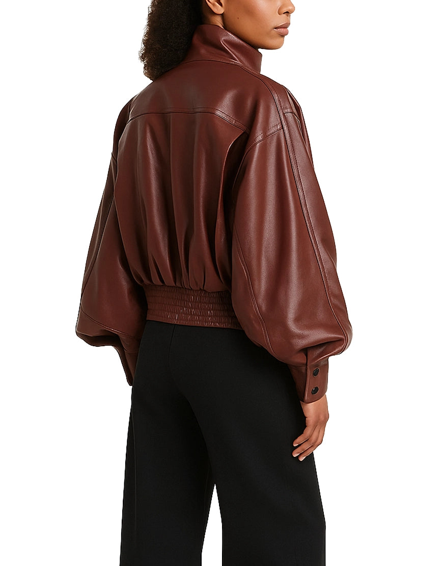 Womens Hypnotic Burgundy Leather Bomber Jacket