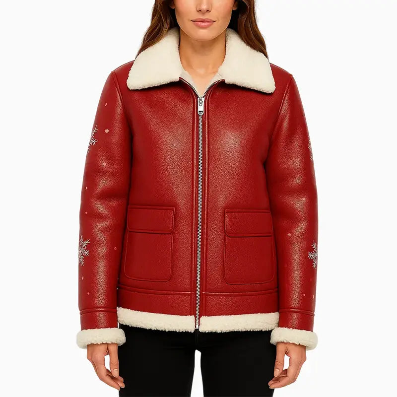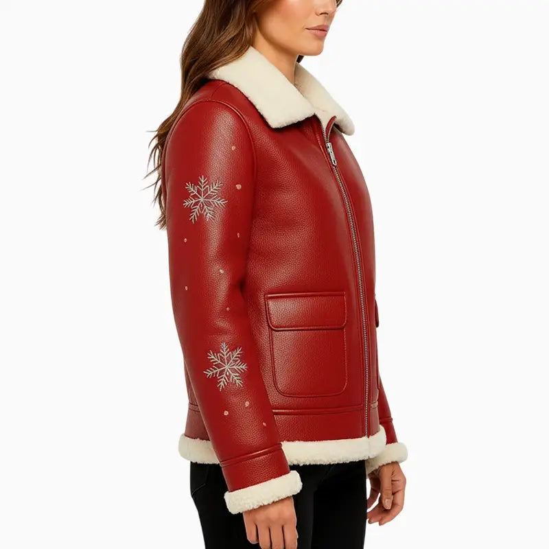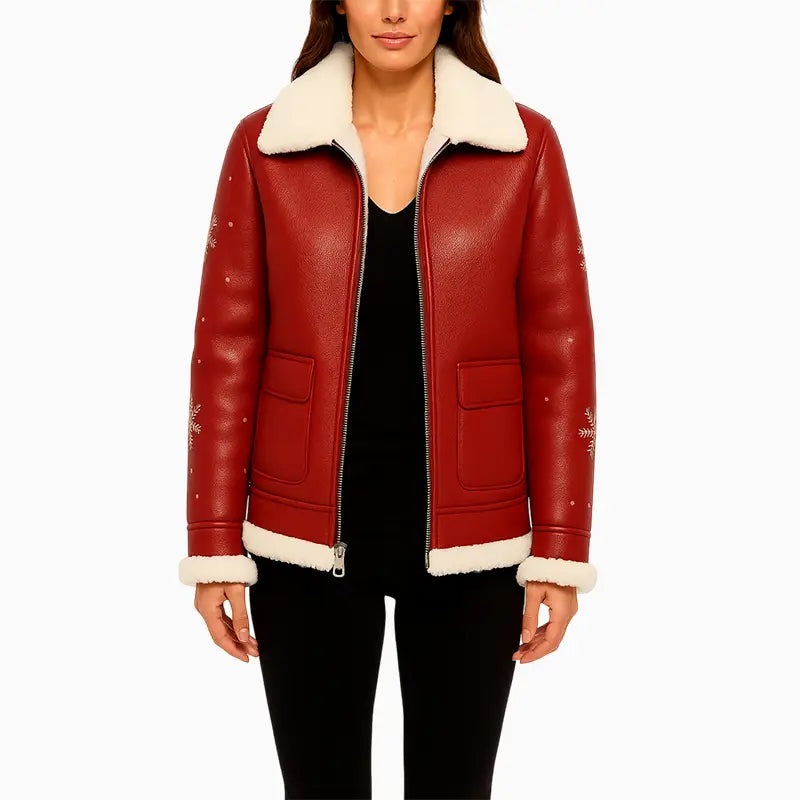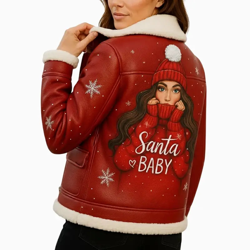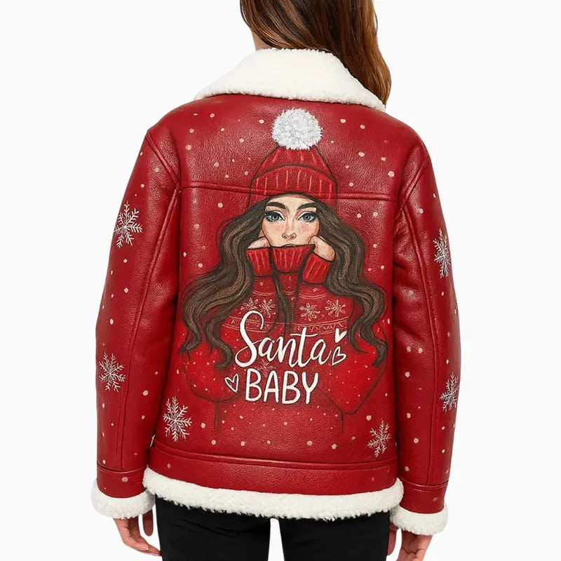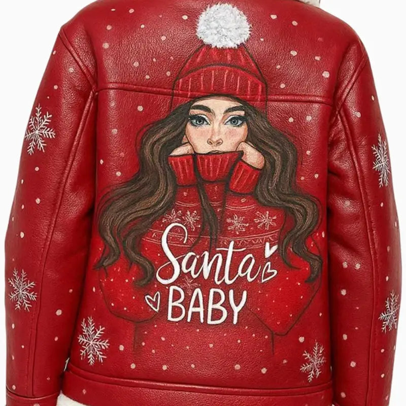 Santa Baby Red Hand Painted Leather Jacket for Women