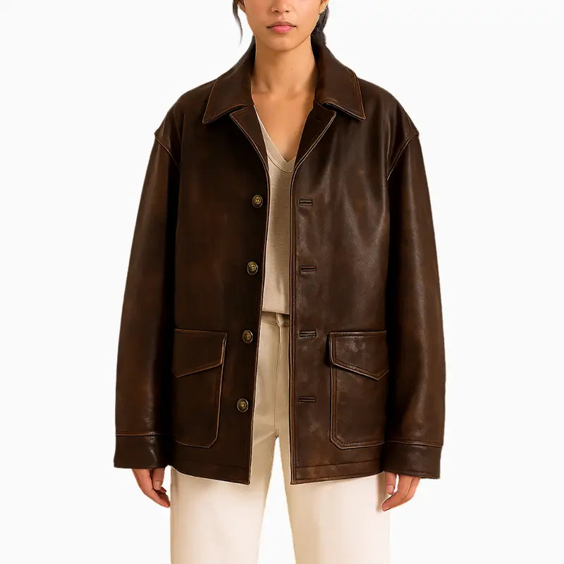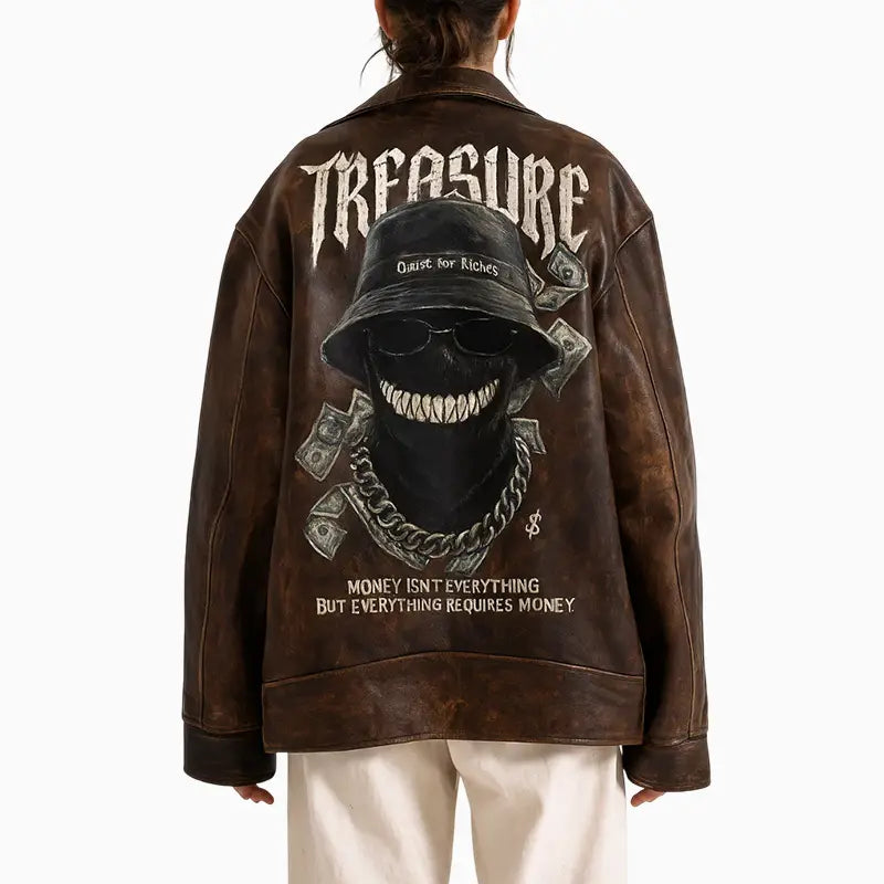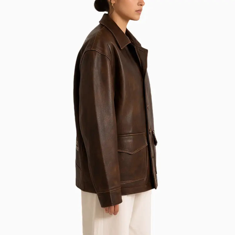 Hand Painted Women’s Dark Brown Distressed Leather Jacket