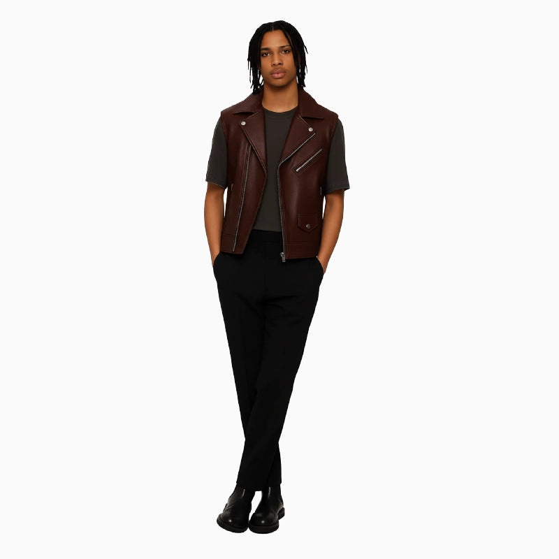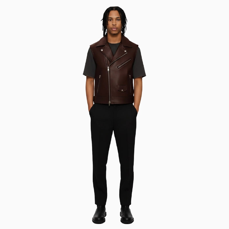 Asymmetrical Brown Leather Vest For Men