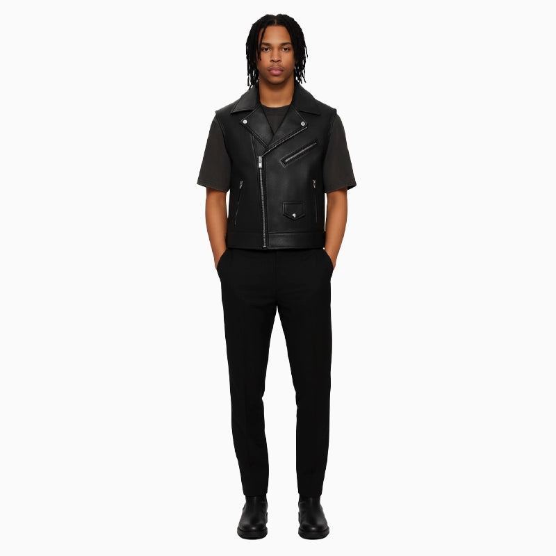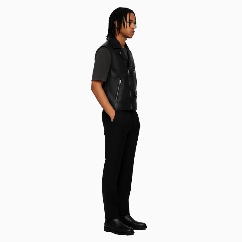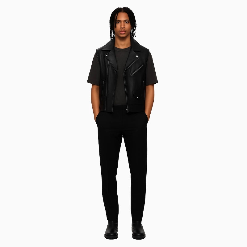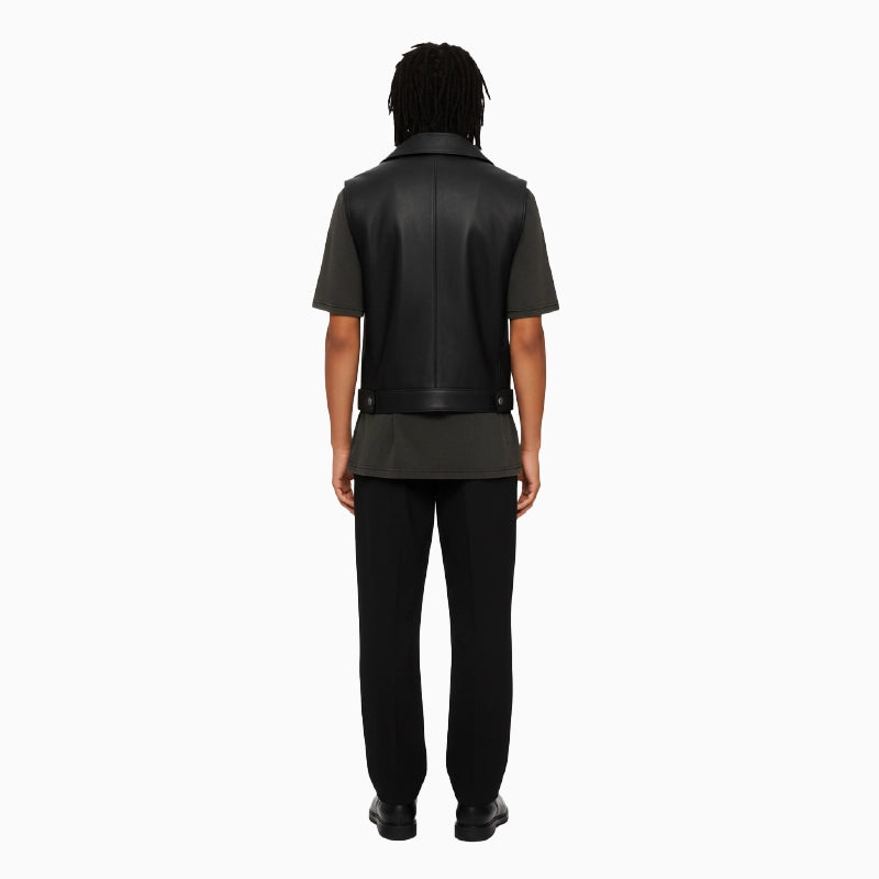 Classic Black Asymmetrical Men's Leather Vest