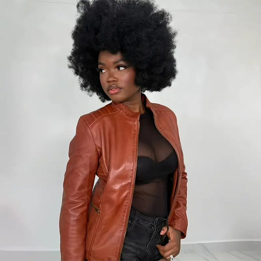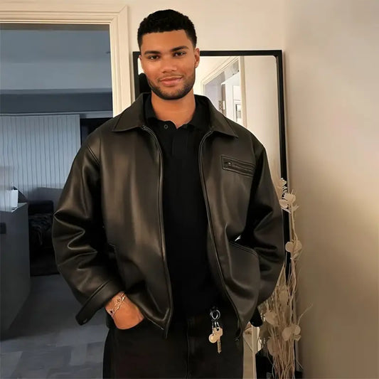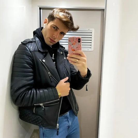 Men’s Black Biker Style Floral Skull Painted Art Leather Jacket